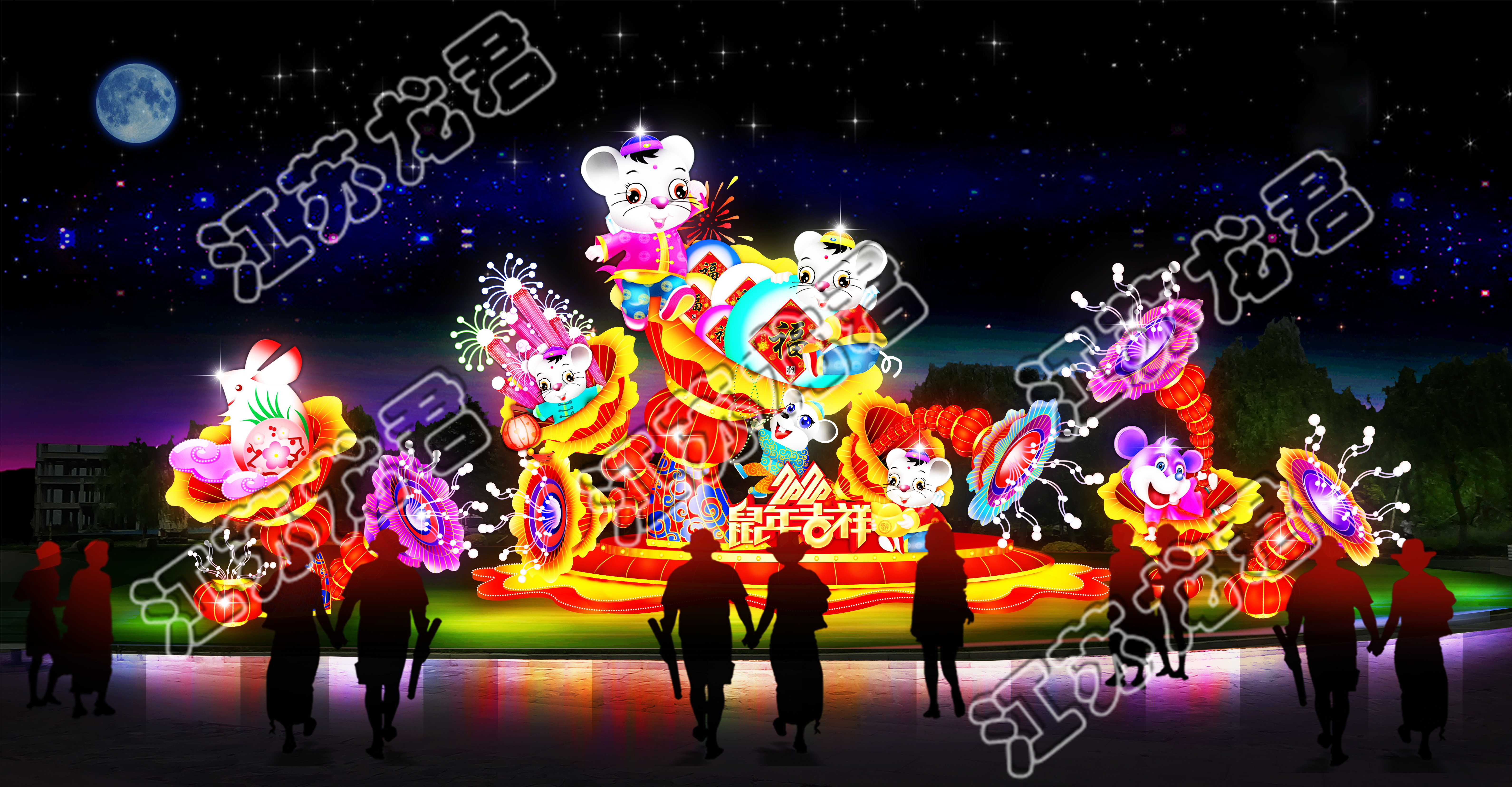 2020鼠年彩燈設(shè)計制作方向并不受局限,更重要的是能夠帶給人們帶去節(jié)日的歡樂,感受到濃濃的新春氛圍,同時向人們?nèi)罕妭鞑ゲ薀粑幕?,這也是龍君展覽制作彩燈多年一直秉持的宗旨,做彩燈文化的傳播者。