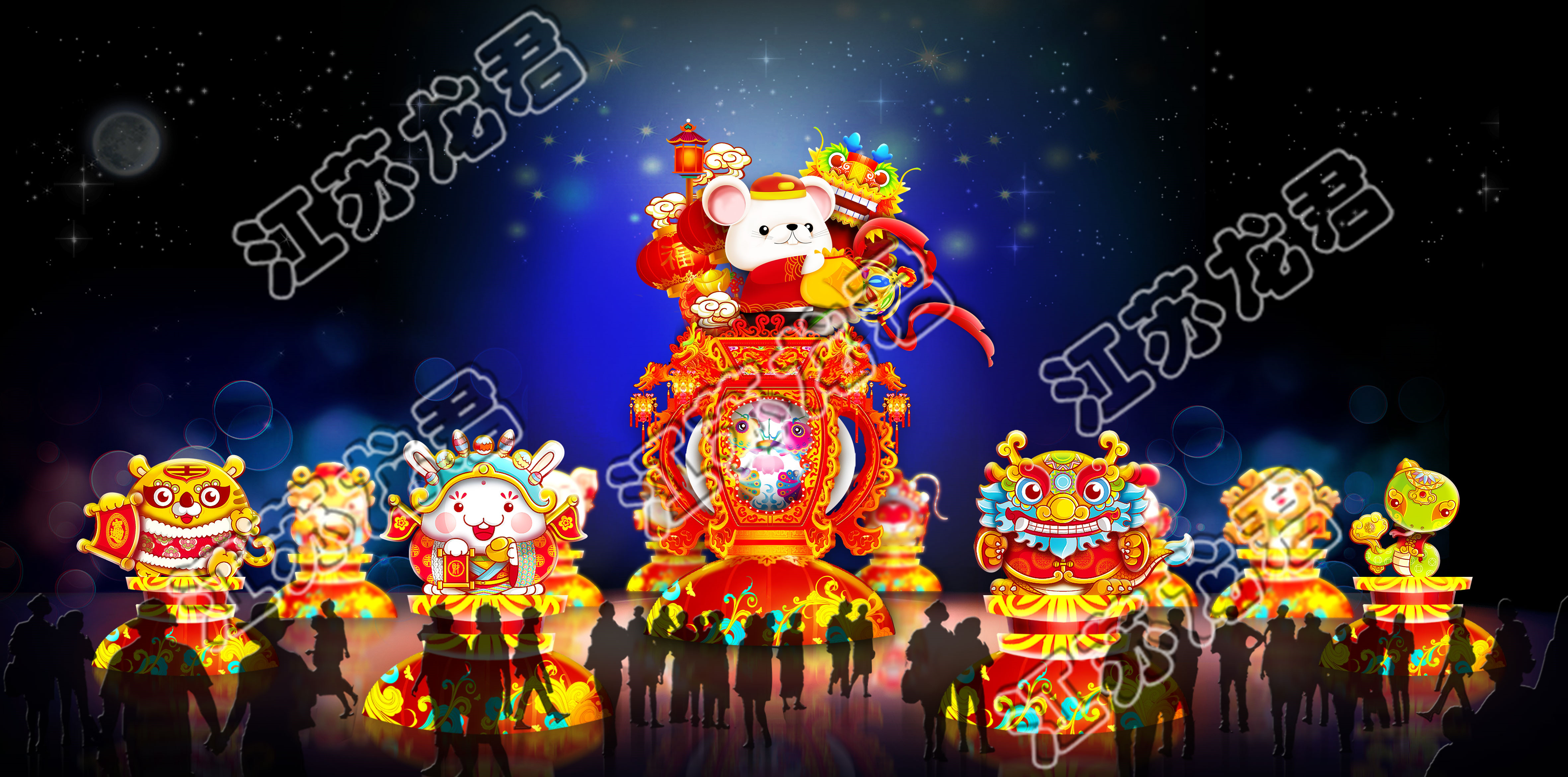 二、說到鼠,可能立馬能夠想到的便是生肖鼠,所以以十二生肖為主題的彩燈組也是彩燈設(shè)計的一個方向。根據(jù)歷年客戶喜好,每到春節(jié)制作當(dāng)年對應(yīng)的生肖是一個不錯的選擇,大型的燈會更會選擇選擇制作具有特色的十二生肖燈組。