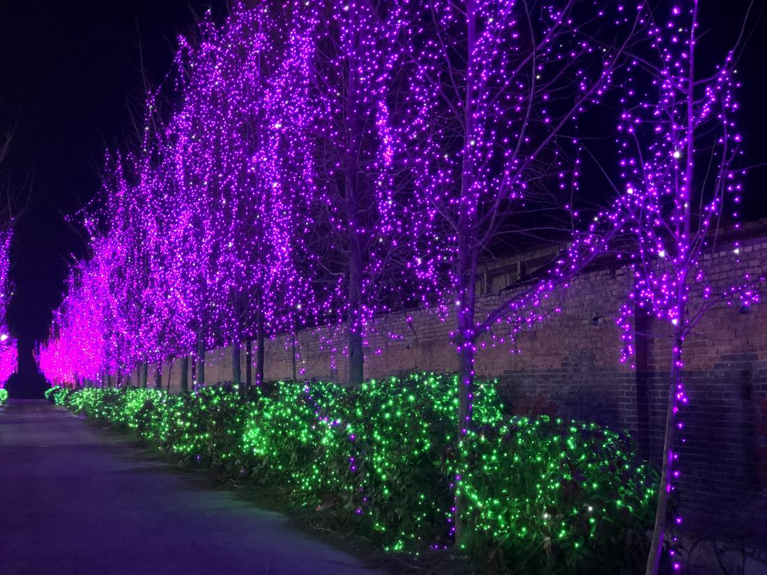 光纖燈樹木亮化。感覺(jué)這是一次比較大膽的嘗試,一般光纖燈條常會(huì)被用來(lái)打造星空館,現(xiàn)場(chǎng)的效果自然無(wú)需過(guò)多描述,現(xiàn)在用來(lái)裝飾樹木,沒(méi)想到形成的亮化效果還是很不錯(cuò)的。