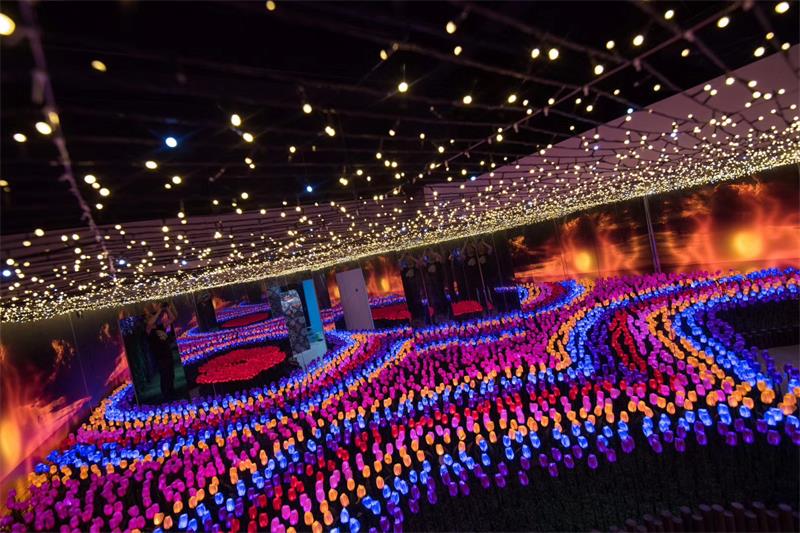 3、千紙鶴燈海—雖然不是花,但是看到千萬只千紙鶴在黑夜中閃耀光芒你會有什么感受?頓時感覺充滿希望,千紙鶴有著美麗的傳說和文化底蘊,成為人們的感情寄托。
