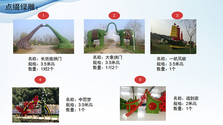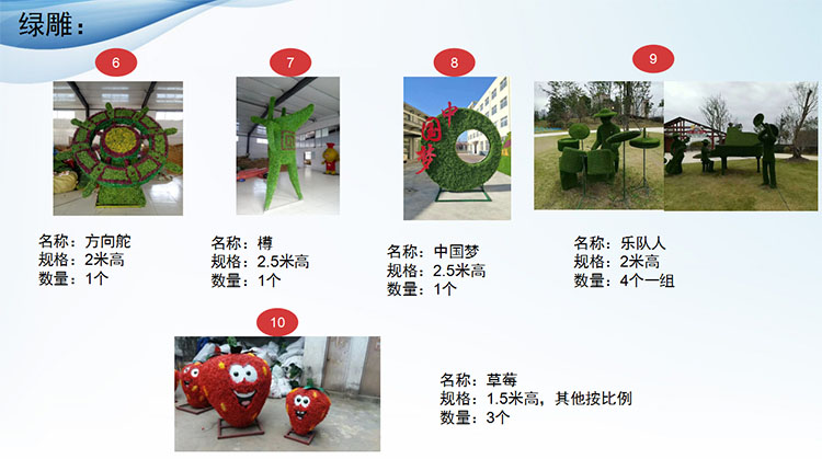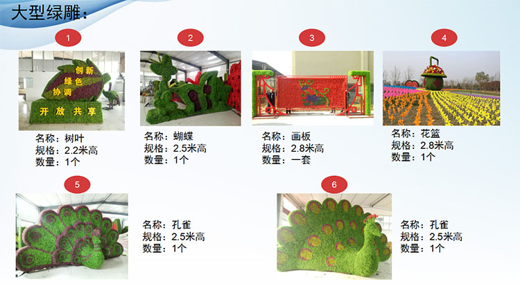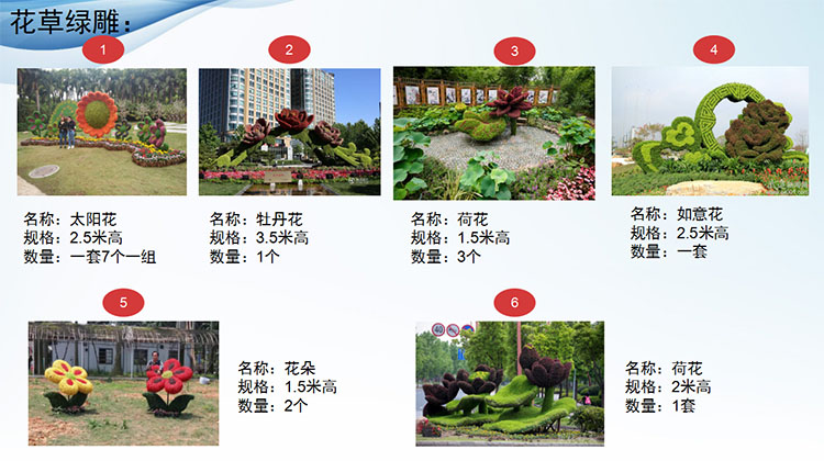 植物幾何造型雕塑、植物動(dòng)物造型雕塑、植物圖標(biāo)造型雕塑、植物建筑造型雕塑、植物國防造型雕塑、植物車船造型雕塑、植物建筑造型雕塑、立體花車、立體花壇雕塑、植物花墻、植物組字、植物造型、園藝雕塑、園林景觀、墻體綠化、垂直綠化、燈桿綠化、護(hù)欄綠化、屋頂綠化、立體綠化、道路隔離花箱、高架橋綠化花盆…