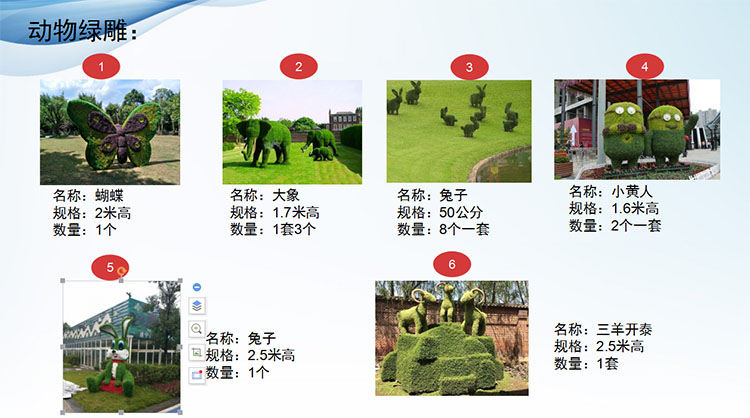 產(chǎn)品名稱:仿真動(dòng)植物造型綠雕園林景觀設(shè)計(jì)更新時(shí)間:2018/4/4 11:08:27 |