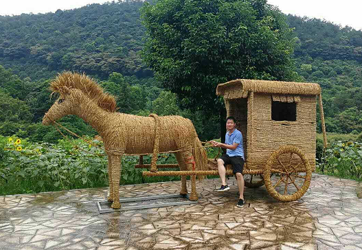 稻草工藝品是民間活動(dòng)的衍生品,曾經(jīng)活躍于重要時(shí)間節(jié)點(diǎn)和儀典。草人、草馬、草船,或代表神靈、或代表亡者、或代表上蒼。苗族、布依族同胞通過活動(dòng)祈福,以求上蒼庇佑,以保豐收年景、天隨人愿等。用稻草制作物器,其制作有“雕琢”“編織”二義,仿木材石質(zhì)雕琢工藝而用稻草“雕制”“編扎”而成。其因精工細(xì)作而雅稱“稻雕”。