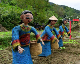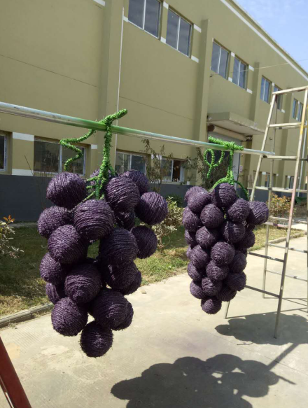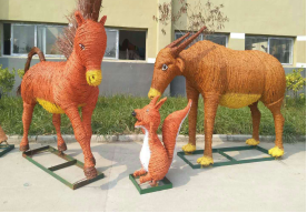 3.最后環(huán)節(jié) (上色): 在稻草工藝形象編扎完成后, 為了豐富藝品的神態(tài), 讓藝品更形象, 在油漆進(jìn)行調(diào)配后,用氣泵噴漆槍或手工描繪的形式給稻草工藝品上色。 另外,為了增長(zhǎng)產(chǎn)品的使用壽命,我們還需要做“防水”處理,在稻草工藝品表面噴涂一層透明清漆, 通常情況下,不做防水處理的稻草工藝品在室外右以保存三個(gè)月左右,而做好防水處理的可以保存一年左右。