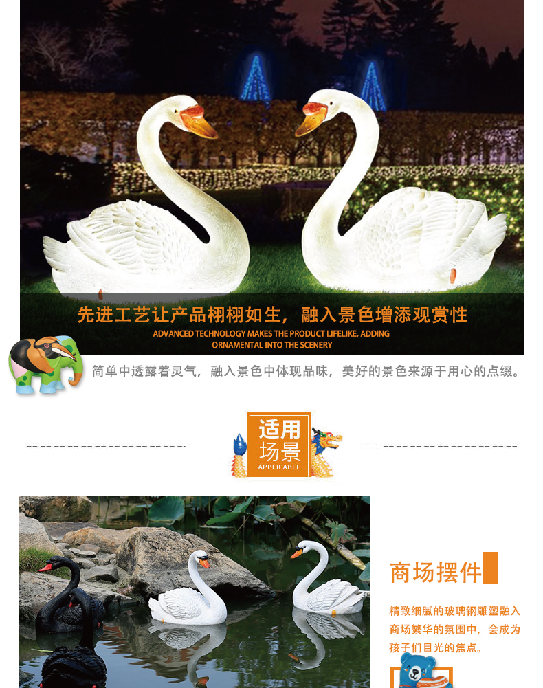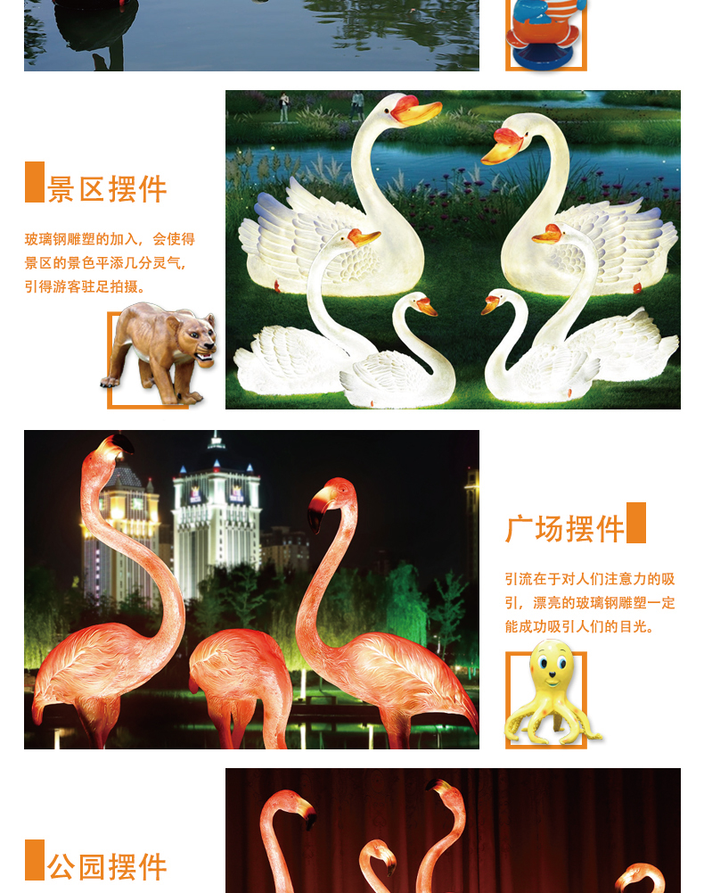 另外,玻璃鋼還具有很好的絕緣性和可設(shè)計(jì)性等優(yōu)良特性。玻璃鋼的作用玻璃鋼奇異造型、可定制、色彩隨意調(diào)配等特點(diǎn)。所以雕塑家就用來作為雕塑的材質(zhì),這種玻璃鋼纖維做出的雕塑就叫發(fā)光玻璃鋼雕塑。目前玻璃鋼材質(zhì)的雕塑在雕塑材料分類來看占據(jù)了半壁江山。日常看到的雕塑有一半都是發(fā)光玻璃鋼雕塑制作的。江蘇燈創(chuàng)亮化科技有限公司發(fā)光玻璃鋼雕塑工廠做的雕塑產(chǎn)品深受廣大客戶的喜愛和好評(píng)。